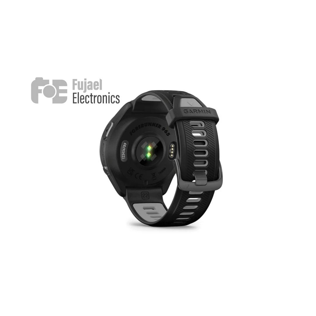 The Garmin Forerunner 965 delivers a powerful blend of premium materials. It is advanced mapping, and long-lasting battery life designed for elite runners, triathletes, and serious fitness enthusiasts. Its 1.4-inch AMOLED display (454×454 pixels) is housed within a titanium bezel for durability, while still maintaining an elegant look that pairs well with both workout gear and casual wear.